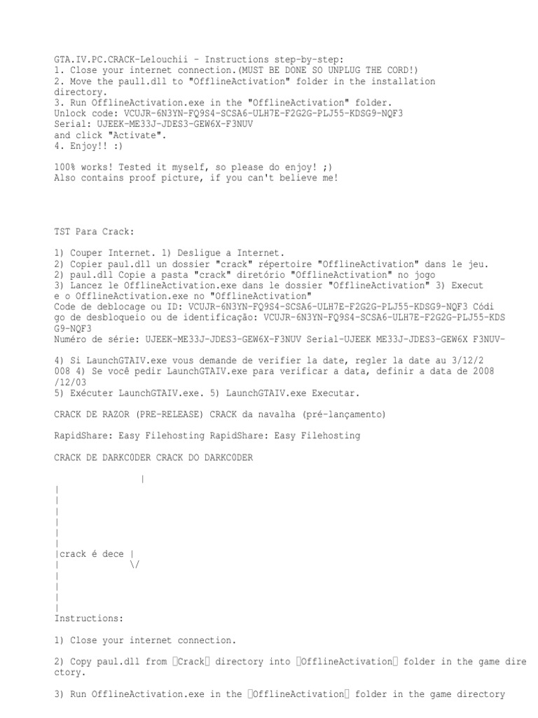 Grand theft auto iv manual activation serial key generator tags: Sign, fax and printable from pc, ipad, tablet or mobile with pdffiller ✓ instantly. Fill unlock code gta 4, edit online. Grand theft auto iv serial key and unlock code! 24 haz 2015 @ 4:08. > 2 yorumdan 1 ile 2 arası gösteriliyor. Where i can get gta iv serial key and unlock code ? Gta 4 offline activation code generator, gta 4 manual activation unlock code and serial. Avs video editor activation code 6. If this is the case then it is. Gta iv / serial & unlock code. 4 manual activation unlock code and . Many downloads like gta 4 eflc may also include a crack, serial number, unlock code or keygen (key generator).